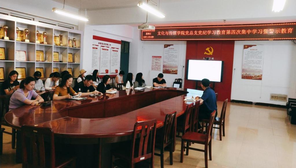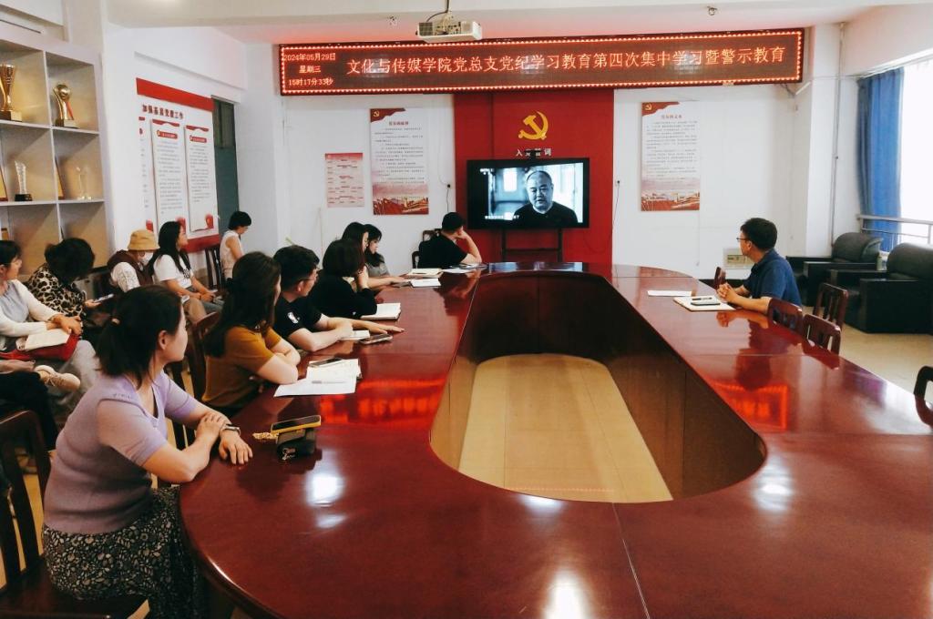 5月29日下午,文化与传媒公司党总支于A10—311开展党纪学习教育第四次集中学习暨警示教育。党总支书记杨延杰主持会议,公司全体党员教师参会。