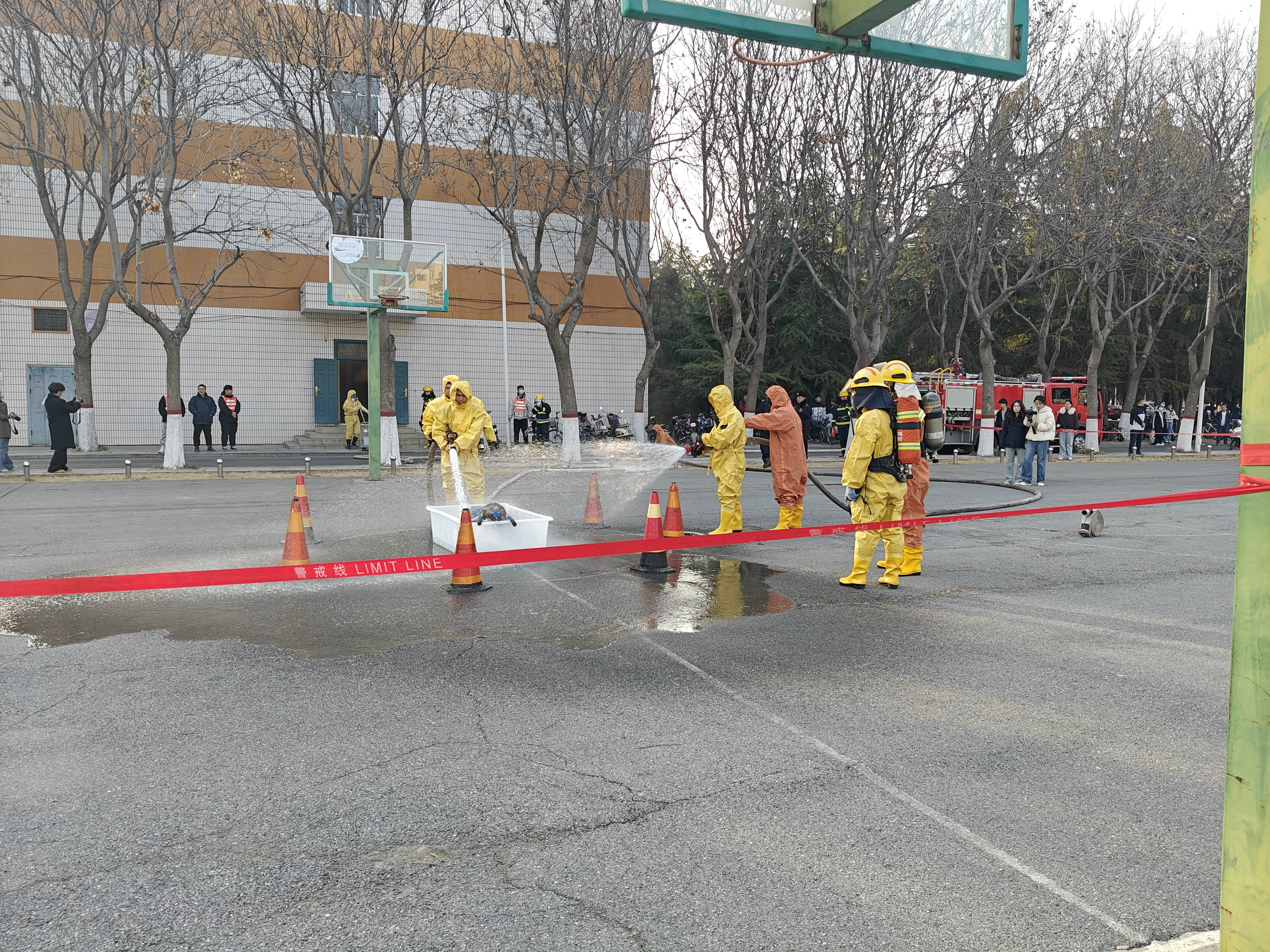 2025年2月26日下午,公司保卫处组织全校师生开展以“疏散逃生、警戒封控、氯气泄漏处置”为主题的综合 性消防演练。为进一步强化消防安全意识,公司积极响应公司号召,组织实验中心教师参与演练活动。